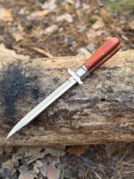 Незвичайний складаний ніж стане чудовим супутником туриста, мандрівника, стане в нагоді для обробних робіт та виконання низки завдань. Оригінальна конструкція передбачає більш довгий меч, ніж рукоять. Таким чином, при складанні ножа половина клинка залишається відкритою. Для виготовлення використовується нержавіюча хромиста сталь 440С. Збалансований склад сталі забезпечує клинку відмінні якості користувача, стійкість до корозії, міцність і твердість. Клинок заточений прямо і має високі обробні якості. У розкритому положенні нож фіксується за допомогою механізму Button Lock. Це простий і надійний механізм, який надійно запобігає мимовільному складання клинка. Рукоятка складаного ножа виконана з деревини, яка не боїться вологи, шкідників та практична у використанні на морозі.