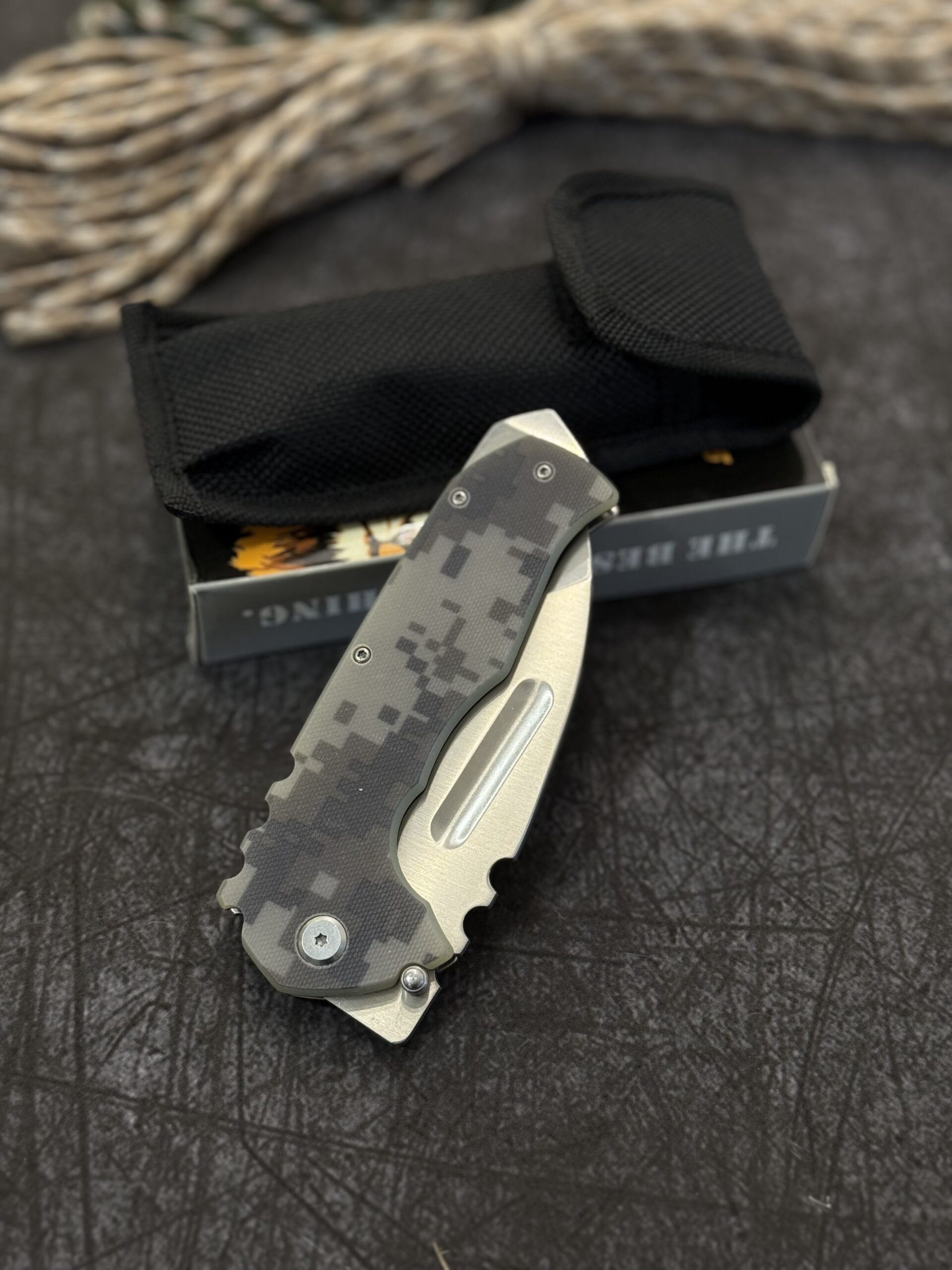 • Рукоять: G10 — легка, міцна, з гарним зчепленням навіть у вологих умовах