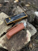 Компактний, тонкий ніж, призначений для риболовлі, кемпінгу та туризму. Леза ножа виготовлені із міцної, нержавіючої сталі. Рукоятка ножа виготовлена з дерева та частково з металу. Має компактні розміри і легко поміщається у невеликій кишені. У комплекті є стильний чохол.