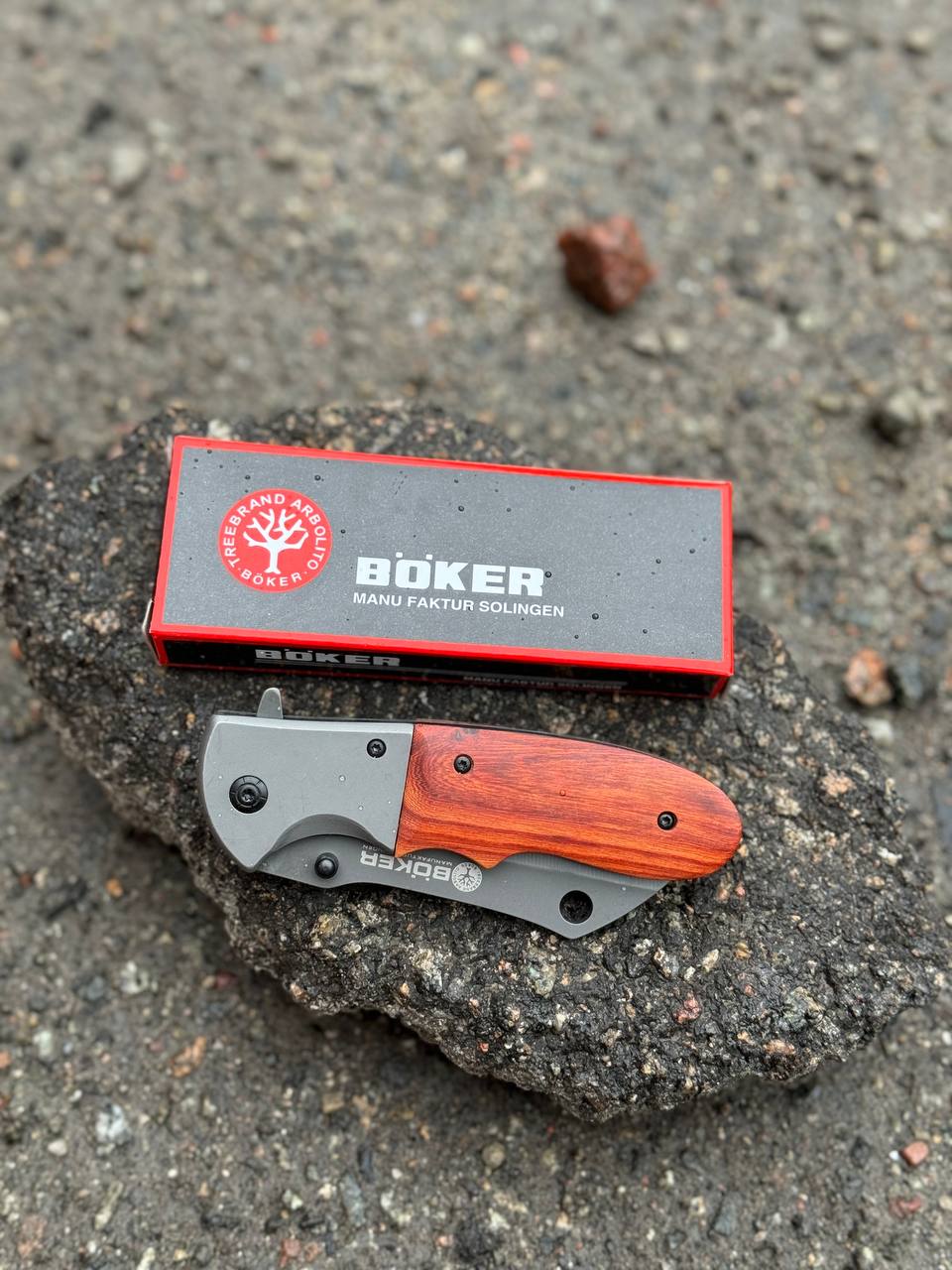 Складаний ніж Boker 2105 – якісний ніж з металевою рукояткою, призначений для полювання, риболовлі та туризму. Леза складаного ножа виготовлені із міцної, нержавіючої сталі. Рукоятка має бронзовий колір і прикрашений стильним гравіюванням. Такий ніж стане чудовим подарунком для справжніх чоловіків. Оснащений спеціальним затискачем для кріплення на кишені чи ремні.