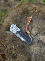 На ножі є кліпса для носіння на поясі. Гарне покриття,нівельована кліпса,міцний обух , та дерев’яні накладки роблять цей ніж не тільки практичним ,але і дуже привабливим.
